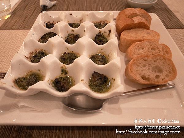 小心燙口的烤田螺可是法式名料理,出於 Just in Bistro更是美味不在話下。