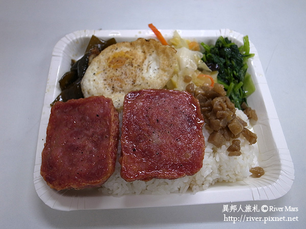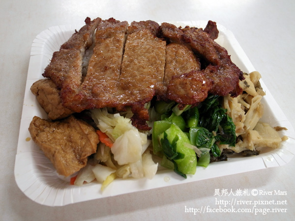 排骨覆蓋的白飯上還淋上一匙肉燥,非常下飯。
