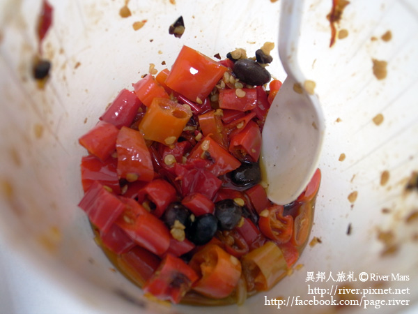 (圖)摻了豆豉的美味辣椒,這也是自行取用(放在餐桌上要找一下)