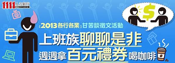 【1111徵文活動】「2013年各行各業甘苦談徵文活動」開始囉!