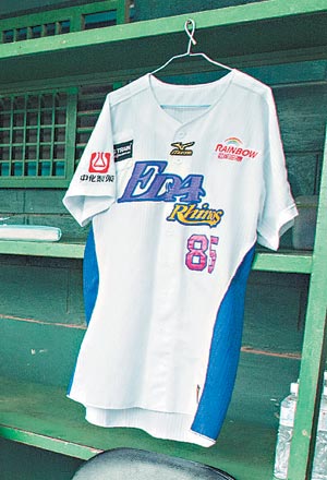 (圖)總教練徐生明猝逝,犀牛隊昨天將他的球衣掛在球員休息室徐總督軍的座位上方,悼念這名鐵血教頭。聯合報記者楊萬雲/攝影