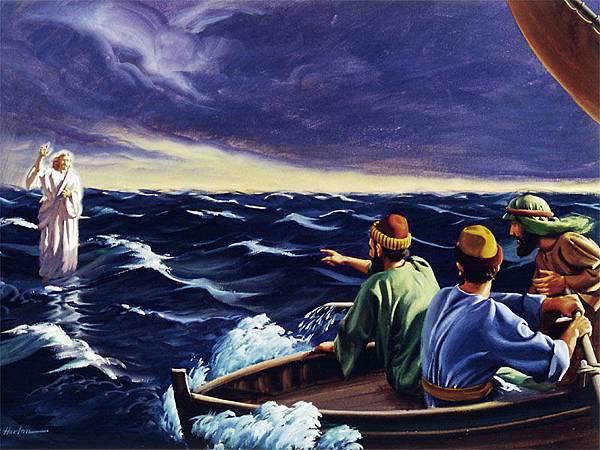 耶穌知道眾人要強逼他作王,又獨自退到山上,催促門徒坐船往伯賽大。